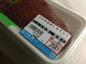 会社近くのスーパーで生筋子を発見!!今年は作ってみたいと思っていたところに現れたいくらの原石です。午前中に見つけたけど完全に予算オーバのため、夕方以降の割引を期待して会社帰りに再度訪問したところ、予想通りの半額シールが貼ってありました。それにしても、高級品になったなぁと改めて実感。