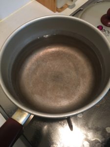 - 用具を用意して、お湯を沸かす(50℃くらい:鍋のまわりに小さな泡が出始めたらOK)