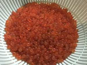 (これを3回位すれば、いい感じのいくらちゃんになります。いくらの量が増えれば、塩水も同じくらいの割合で増やす)
