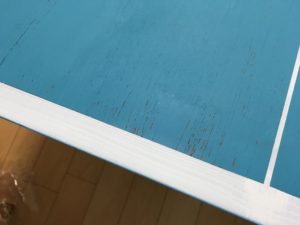 本当は天板全体を塗る前にラインだけを塗って、天板とラインを分けて塗るほうがきれいな仕上がりになりますが、時間短縮のため、今回のような手順でやりました。