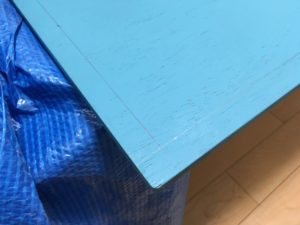 天板自体のヤスリがけも大切ですが、天板サイドのヤスリがけを丁寧にしておいた方がいいです。何もしていないとすぐにトゲが刺さってしまいます。また、四隅の角も結構危ないので、予めヤスリで角を取っておいたほうが安全だと感じました。