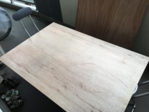 幾つかの工程を経て、天板が完成します。簡単に手順を紹介します。もっと、写真を撮っておくつもりだったんですが、熱中してしまいほとんど撮り忘れてしまいました。