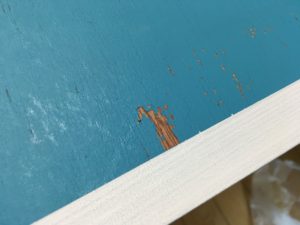 一点だけ、残念なことがありました。マスキングテープを外したときに一部塗装が剥がれてしまいました。もう一度塗り直せばいいだけなのでちょっとショック。しっかりヤスリがけしてればこんな事にならないのかなぁ。
